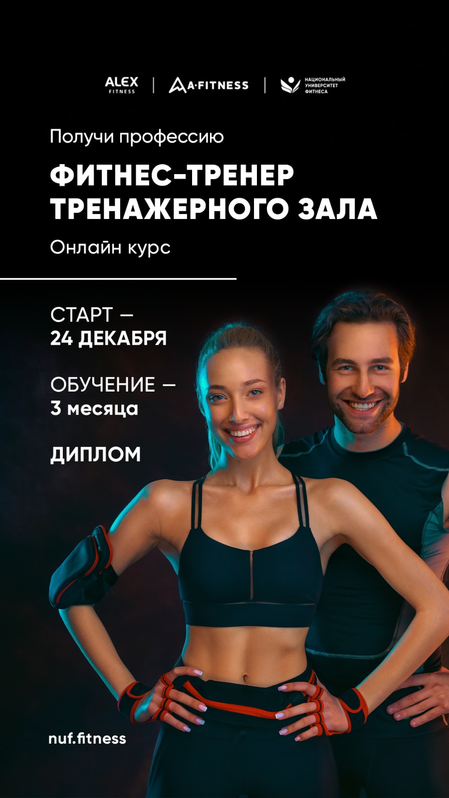 Лучшим студентам даём рекомендации и возможность стать сотрудником сети фитнес-клубов Alex Fitness и A-Fitness.